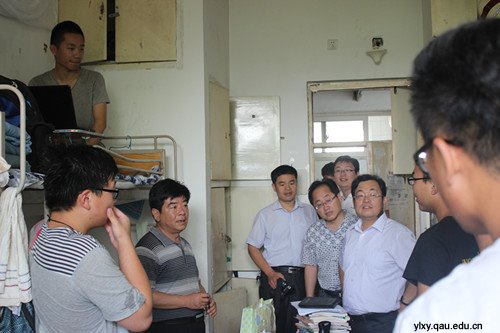 7月1日上午,园林与林学院党总支书记田义轲,院长刘庆华,党总支副书记肖伟和分团委书记李超一同走访了2015届毕业生宿舍。
