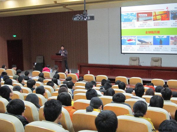 讲座于7时准时开始。在一片热烈的掌声之中武老师走上讲台。讲座开始,武老师以事实现状作为导入,深刻评析了当代大学生面临的严峻就业形势,以说明大学生创业的必要性。通过激发同学们的创业兴趣之后,武老师围绕大学生如何创业,创业会带来什么,创业需要什么等学生关注的问题做出了深入浅出的讲解。风趣幽默的讲课方式,鞭辟入里的形式分析,通俗易通的模式讲解,整场讲座让在场学生获益匪浅。