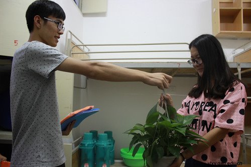 走进学院的新生宿舍,一眼就会发现每张桌子的中央都摆放着一盆养眼的绿色植物,翠绿的叶子引人注目。据园林与林学院心理发展部介绍,这些盆栽都是由学长学姐们亲自精心挑选,代表学院赠予新生的欢迎礼物。此外,学院在每个盆栽的上都放置了一张卡片,寄语新生要不断开阔视野,健全人格,在大学的人生舞台上大胆施展个人风采。