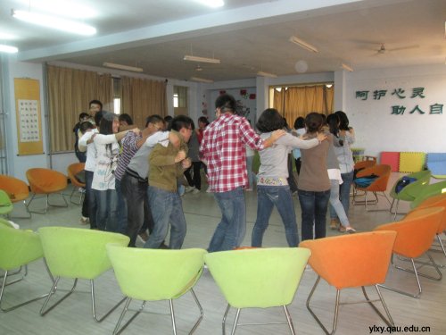 “面对这种种存在于新生之间的心理问题,采取单一的说教方式起不到任何的作用,反而相对轻松愉快的游戏对新生的减压往往会起到事半功倍的效果。”心理发展部部长张婷婷如是说。