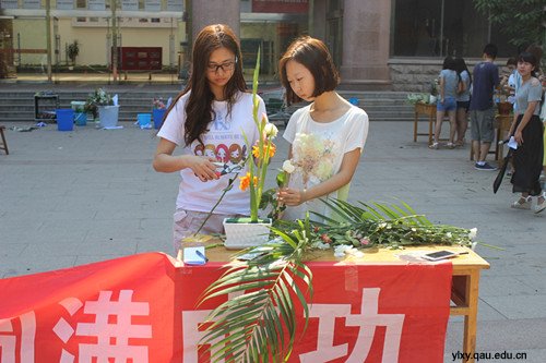 为响应青岛农业大学社团文化节的号召,由园林与林学院分团委主办,园林与林学院大学生社团联合会与青岛农业大学园林研究会承办的第二届花艺节系列活动之“缤纷花韵,艺术插花 ”比赛于6月14日在文经楼前正式开赛。形式多样的插花比赛吸引全校各个学院的学生前来参赛。