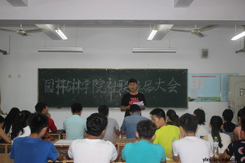 8月27日,园林与林学院社团联合会在教学楼c610举办换届大会,出席此次会议的有14届社联主席徐祥杰,15级学生会主席李增金等。本次会议由15级社联主席徐延鑫主持。