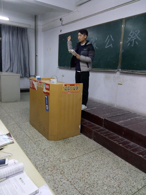 在晚上,学院组织了以“国家公祭日”为主题的团课,提醒我们每一个人,我们超越了个体、家庭和小圈子,也超越了血缘、社交圈与乡土的情感,我们是一个整体,我们是共同在悲痛,避免历史悲剧的重演,是我们共同的责任与义务,也让我们更深切地体会到国家存在的目的和价值,体会到国家统一强大的重要,让民族精神提升,让我们更加爱国。