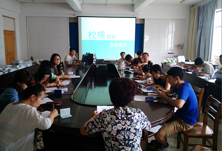会上,研究生秘书赵贤慧老师简要介绍了我院研究生的基本情况。随后,学院研究生会同学带领全体新生学习了教育部颁布的各项学生管理规定和我校研究生各项规章制度,并对2015级研究生给与了建议,希望大家尽快适应研究生生活,努力学习、勤于实践,全面提高综合素质;同时,加强自律意识,遵守校规校纪,掌握独立学习和科研的能力,充实的度过研究生时光。