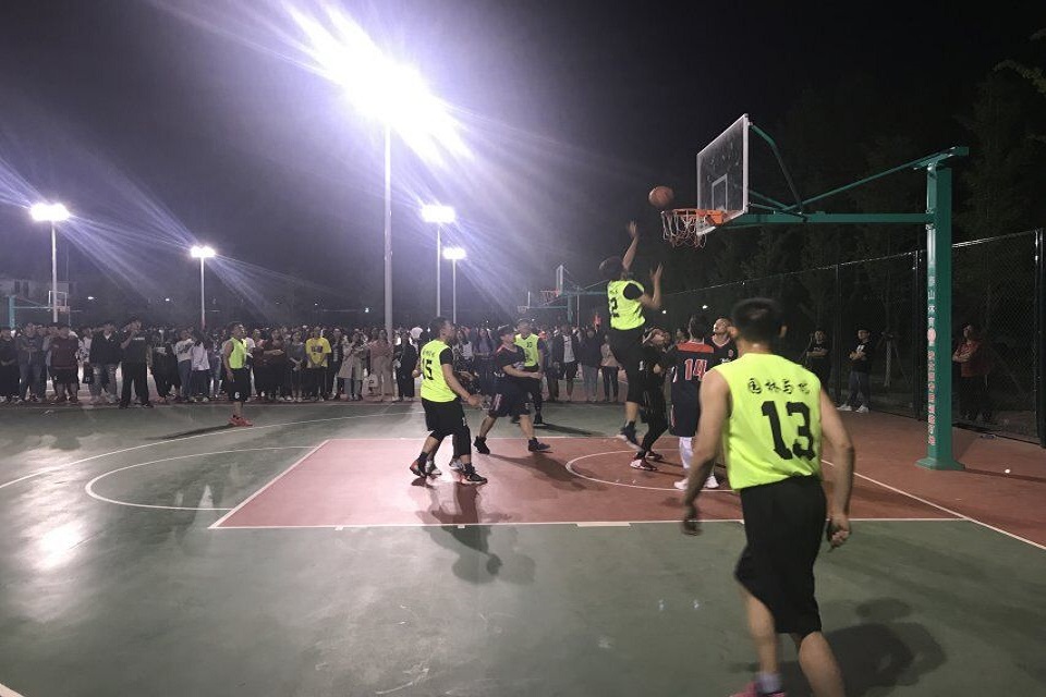 上半场,园林队的队员们便凭借着出色稳定的发挥将比赛节奏掌握在自己手中并且一路领先。张超一个跳投三分,赢得场下一片欢呼;而刘承志抢断快攻助飞朱墨空接补扣,更是将比分差距迅速拉大。但外国语学院队员们在比分落后的情况下,依然不屈不挠,几个出色的团队配合成功追回几分。下半场,园林学院保持了上半场的优势,在外国语学院的强势反扑下,队员们依旧镇定自若,还加强了团队配合。吴常赛突破分球给夏庆哲,后者则空切篮下,敏捷地将球放进篮筐,丝毫不给对手任何一丝机会。在比赛的最后几分钟里,外院在观众的呐喊助威下,负隅顽抗,虽然也追回了几分,无奈分差过大,还是不敌园林队的攻势。最终,园林队以61:23的比分赢得了此次比赛的胜利。