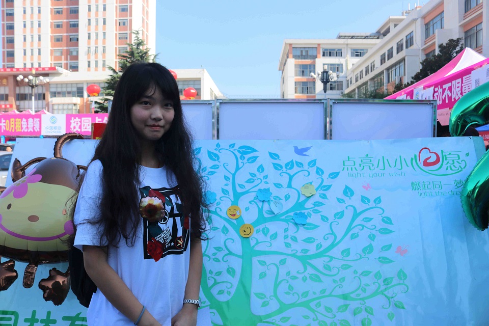 新生在心愿墙前拍照留念