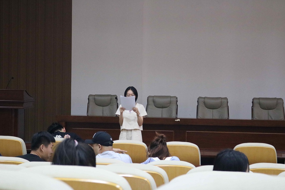 考核伊始,辅导员孙贝贝首先对开学初各项工作进行了安排。她强调,首先要严格遵守请销假制度,其次要多关注班级同学暑假期间的思想动态,发现问题要及时上报,第三方面要做好迎接大一新生的准备工作,最后要重视学期初学风建设和文明素养。