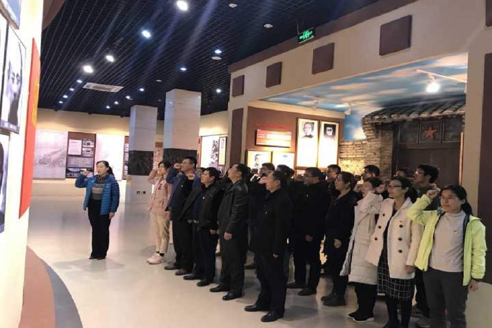 青岛市革命烈士纪念馆占地面积2.62万平方米,是青岛市区唯一一处纪念性园林。党员们首先瞻仰了青岛革命烈士纪念馆山河魂烈士群雕。随后参观了西展厅,西展厅以青岛党史为主线分别展出了抗日战争时期、解放战争时期的重大历史事件和33位著名烈士的英雄事迹。接着一行人参观了东展厅,东展厅展出了社会主义革命建设与改革开放新时期的重大历史事件和70位著名烈士的英雄事迹。最后在工作人员的讲解下参观了青岛革命烈士纪念馆纪念大厅。正厅的正中为“百年青岛”巨幅锻铜浮雕,整幅浮雕表现出“勿忘国耻、告慰英灵、奋勇前进”的主题。正厅四周展出了青岛党组织建立的过程、大革命时期以及土地革命战争时期的重大历史事件和37位著名烈士的英雄事迹。全体党员在展厅中面对党旗重温了入党誓词。