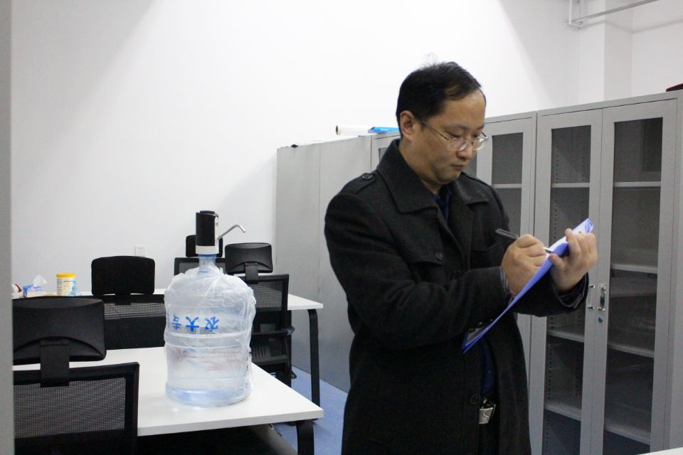 检查小组一行首先对研究生的学习教室进行了检查,经细致检查后现场指出了实验室物品摆放杂乱、卫生不达标、值日人员及规章制度安排不到位、窗户有遮挡等问题。费廷坤要求相关同学立即按要求进行整改。随后,检查小组重点检查了学院实验室的危险化学品管理情况,对实验室的用电安全及实验室的环境管理提出指导意见。在检查过程中,周春玲对实验室危化品分类存放不规范、化学品使用记录滞后、废液存放无标识,以及实验室中杂物堆积、用电存在安全隐患等问题提出整改要求。她强调,实验室安全是学院安全工作的重中之重,各位同学应该严格按照学校实验室安全管理规定,落实安全管理责任制度,提高自己的安全意识。