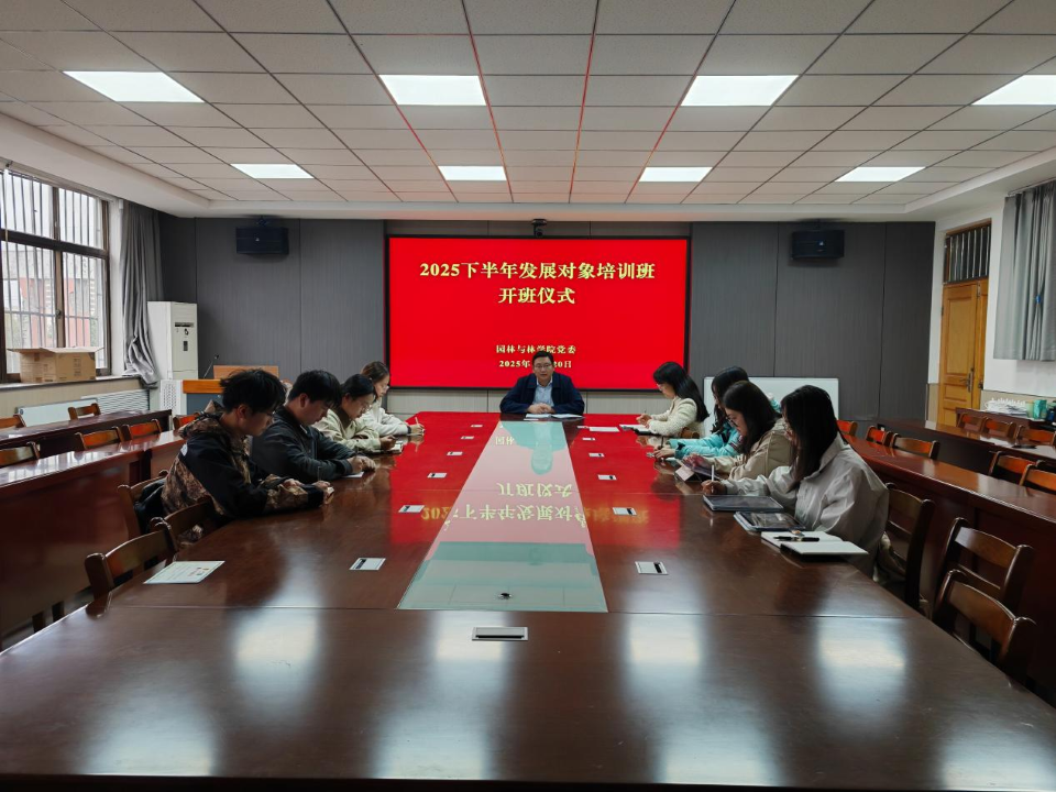 为切实加强党员发展对象队伍建设,进一步提升其政治素养与党性修养,帮助其深化对党的认识、端正入党动机,夯实成为合格党员的思想与行动基础。10月20日,园林与林学院于文经楼C317隆重举行2025年下半年党员发展对象培训班开班仪式,学院党委副书记、副院长李超主持仪式并讲授开班第一课,辅导员陈丽和全体党员发展对象参加。