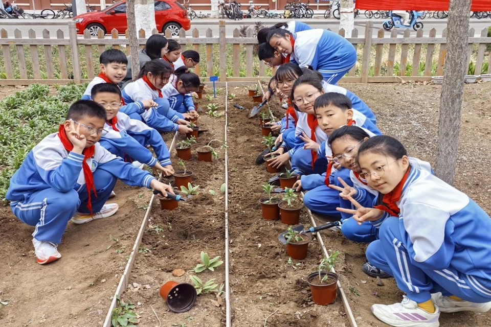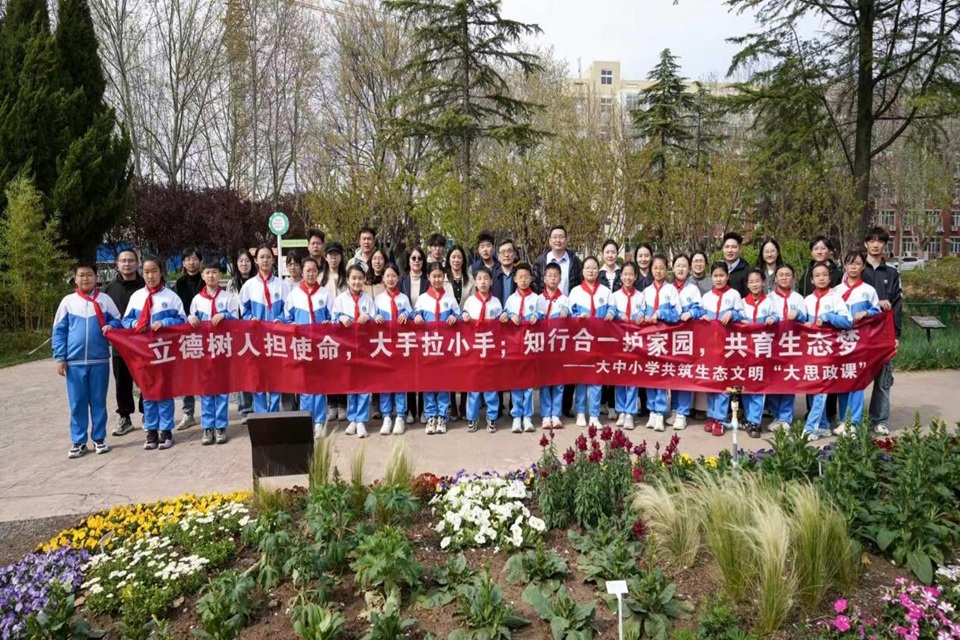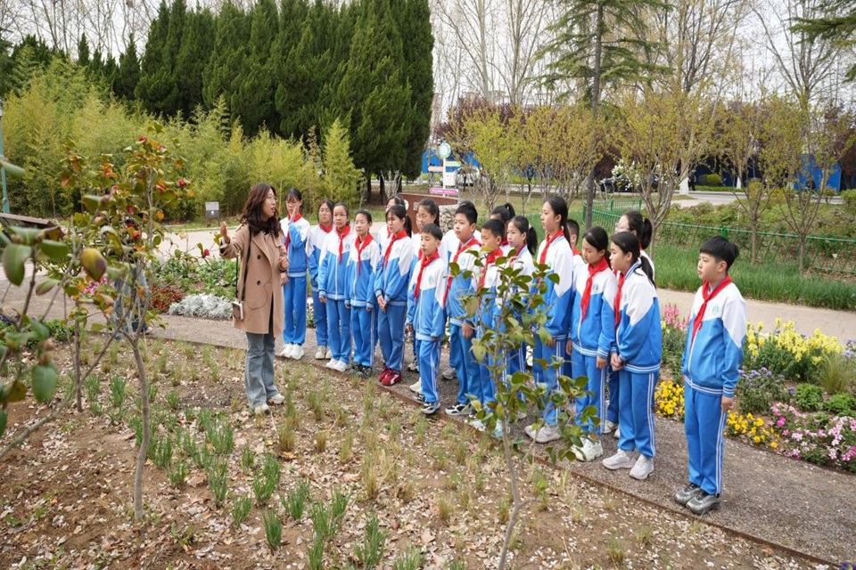 为深入推进大中小学思政一体化建设,落实立德树人根本任务,4月8日下午,青岛农业大学园林与林学院邀请靖城路小学师生走进学院群芳圃,开展了一场以“大手拉小手,共育生态梦”为主题的研学实践活动。本次活动将专业知识与思想政治教育深度融合,通过沉浸式体验,为小学生们上了一堂生动的生态文明“大思政课”。