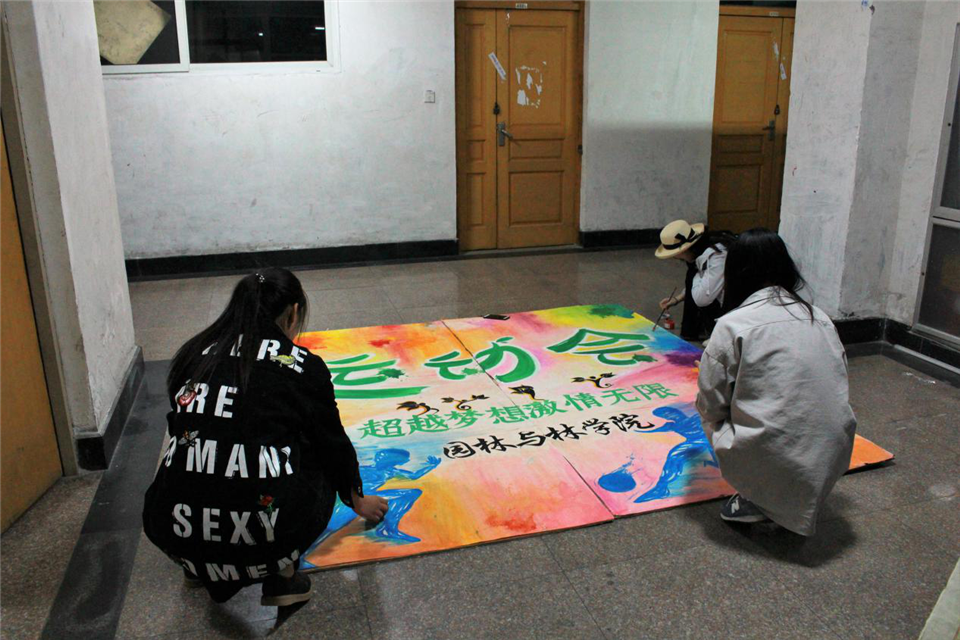 为了展示园林与林学院特色,宣传部书美组的同学们积极准备展板工作,他们用画笔将展板赋予生机与活力。