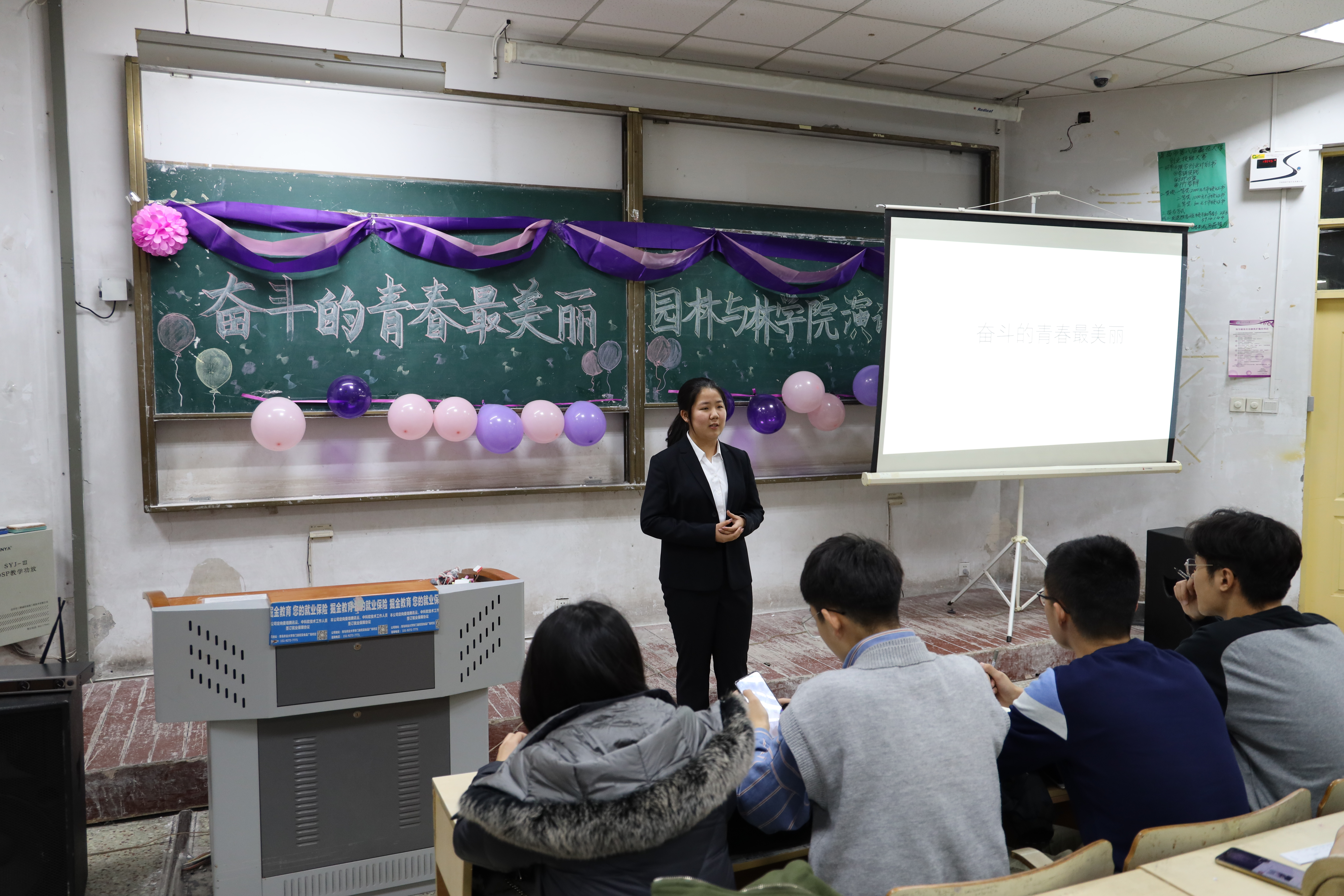 11月16日,青岛农业大学园林与林学院“奋斗的青春最美丽”主题演讲比赛决赛于教学区举行。经过复赛的激烈角逐,来自不同专业不同年级的十名选手脱颖而出入围决赛。评委团由学院学生会主席马珺及各部部长组成,学院18级同学来到现场观看比赛。