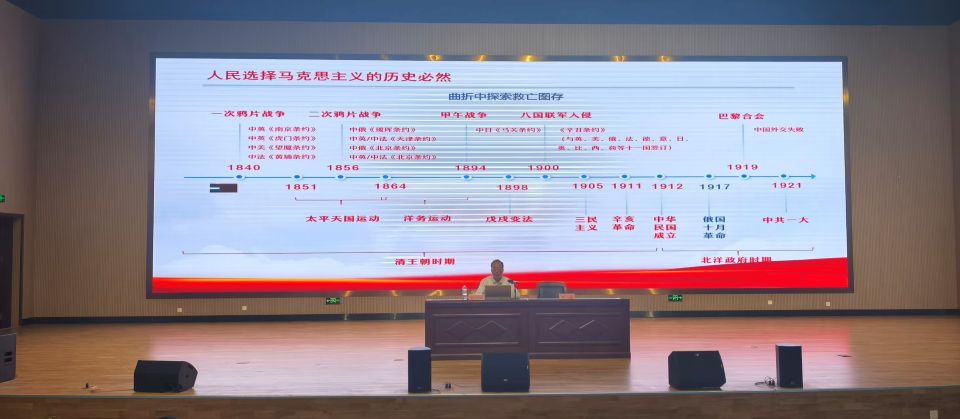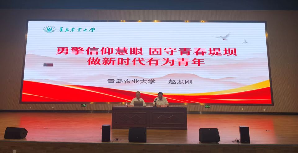 开学第一课伊始,副院长李超致开场辞,向新生介绍了开学第一课的核心内容与意义,拉开了课程序幕。随后,赵龙刚以“勇擎信仰慧眼 固守青春堤坝 做新时代有为青年”为主题授课,通过时间轴梳理“人民选择马克思主义的历史必然”,让新生深刻理解真理的力量;同时,结合自1951年莱阳农业学校起的发展历程,从校史变迁到如今的办学成就,讲述学校与时代同频共振的坚守,鼓励新生扎根专业、勇担新时代青年使命。