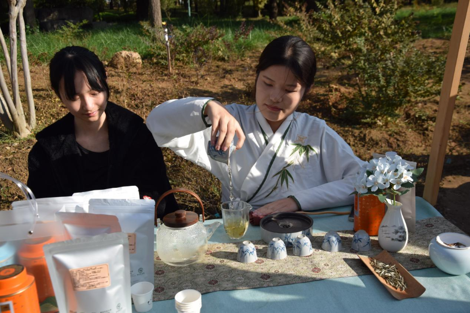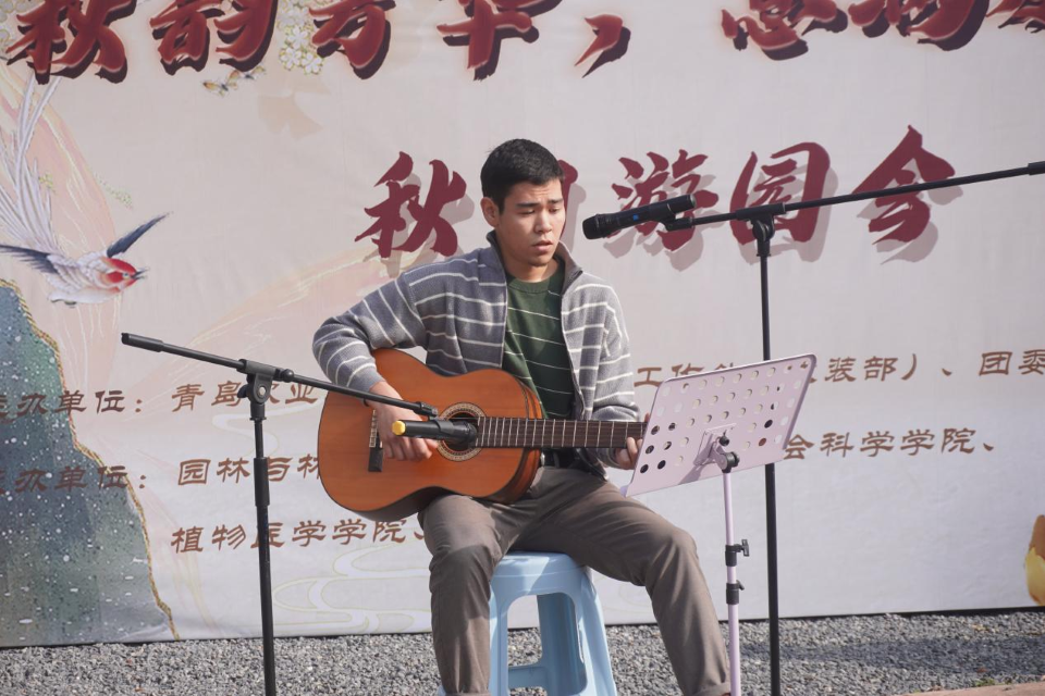 活动期间,群芳圃主场区域还开展了传统文艺节目展演,邵梦蝶演唱的《隐形的翅膀》传递青春力量,林学专业学子带来的古典舞《醉太平》尽显东方雅致,朗诵《秋实歌韵谱华章——诵华夏金秋》描绘出金秋盛景,虹子汉韵社的《汉韵踏秋行》走秀更是将传统文化氛围推向高潮,师生们驻足观赏,不时拿出手机记录精彩瞬间。留学生Rasul以一曲深情的哈萨克语吉他弹唱,为现场师生带来了极具民族特色的音乐盛宴,也让中外文化在这一刻实现了温暖交融。