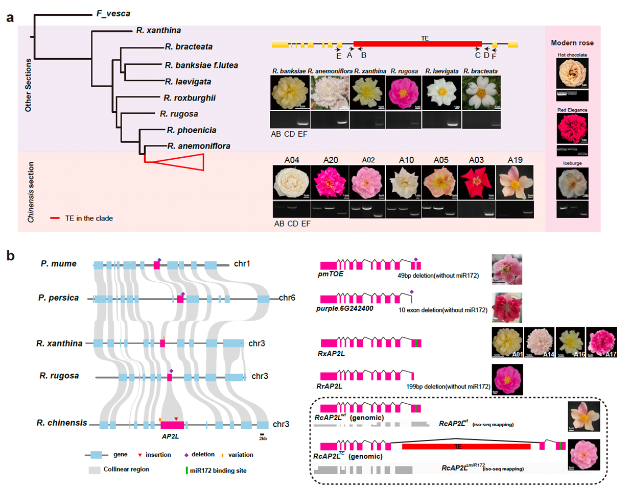 图3 调控月季重瓣花形成的AP2L在蔷薇科的等位变异