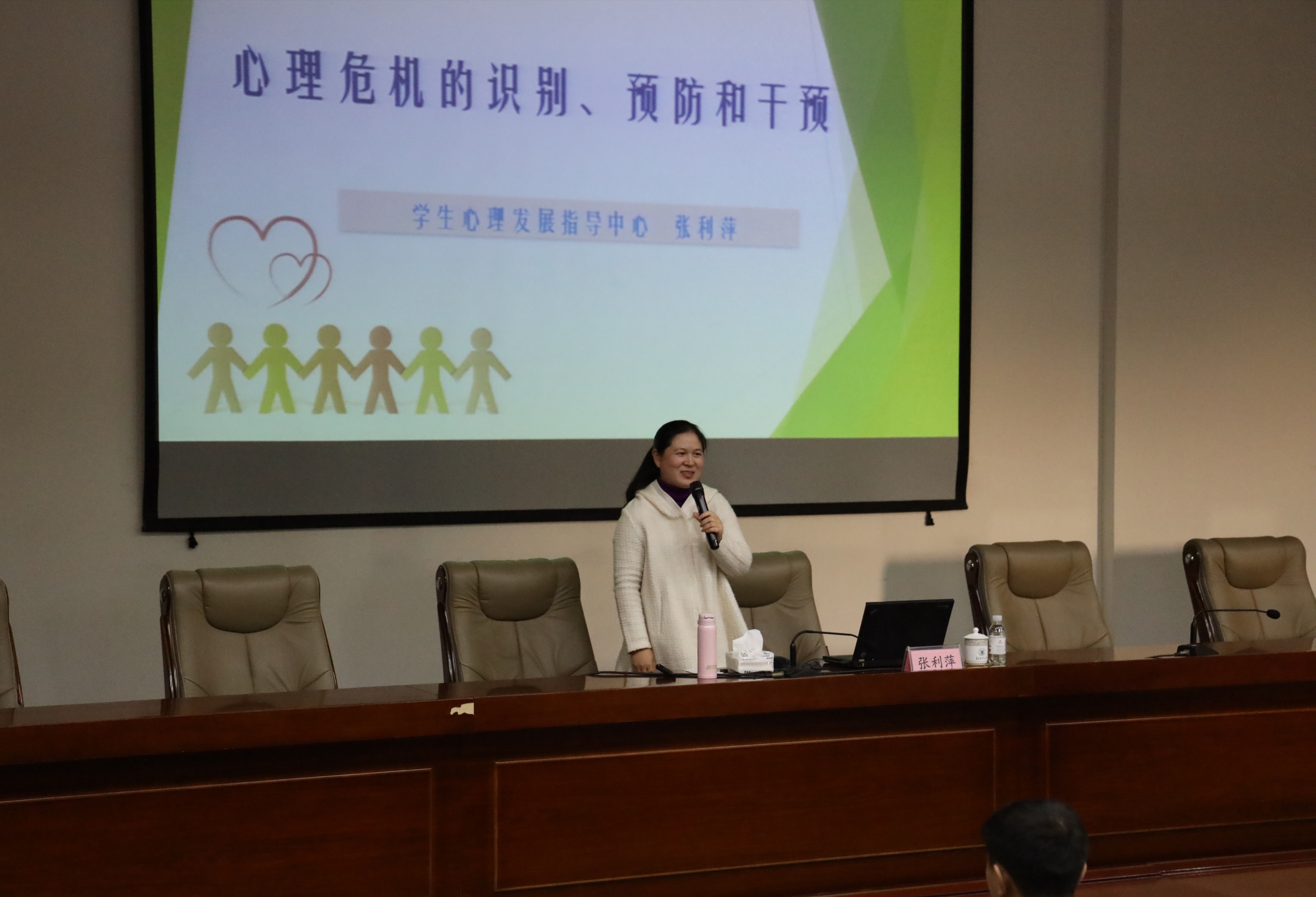 11月22日,青岛农业大学园林与林学院举行了以“心理危机的识别、预防和干预”为主题的青马培训,此次培训由学生心理发展指导中心主任张利萍主讲,学院学工办成员和部分新生班主任参加报告会。
