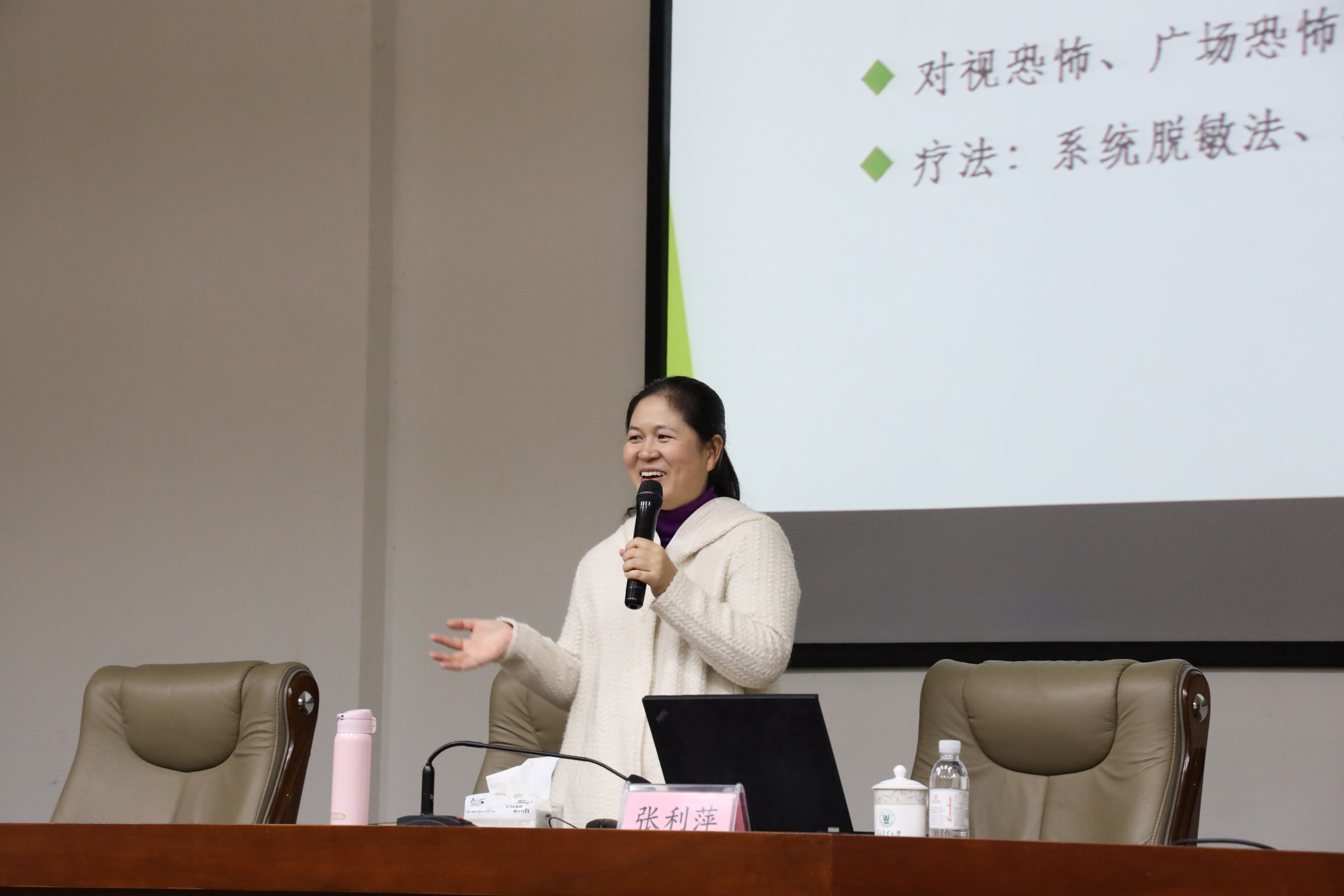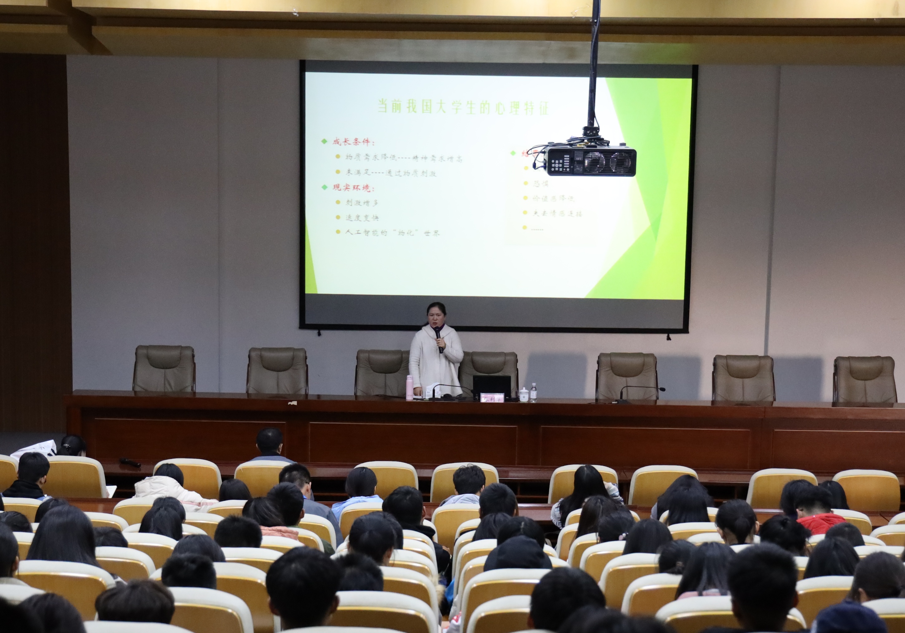 报告会上,张利萍结合真实的案例,以校园心理问题的识别与处置为主题,从大家对同一现象的不同认识,引领大家初探人性,认识心理问题,深入浅出的从心理危机成因、心理危机的识别与干预、心理疾病的分类等几个方面进行阐述,结合大学生心理特征,指出及时进行心理健康咨询对心理危机的识别和矫正具有优越性与可行性。张利萍详细的向同学们讲解了关于神经症、有关自杀的认识误区等方面的问题,让大家能更好的认识心理问题,同时增强帮助身边同学处理心理问题的能力。张利萍的演讲生动形象,报告会氛围轻松愉快。
