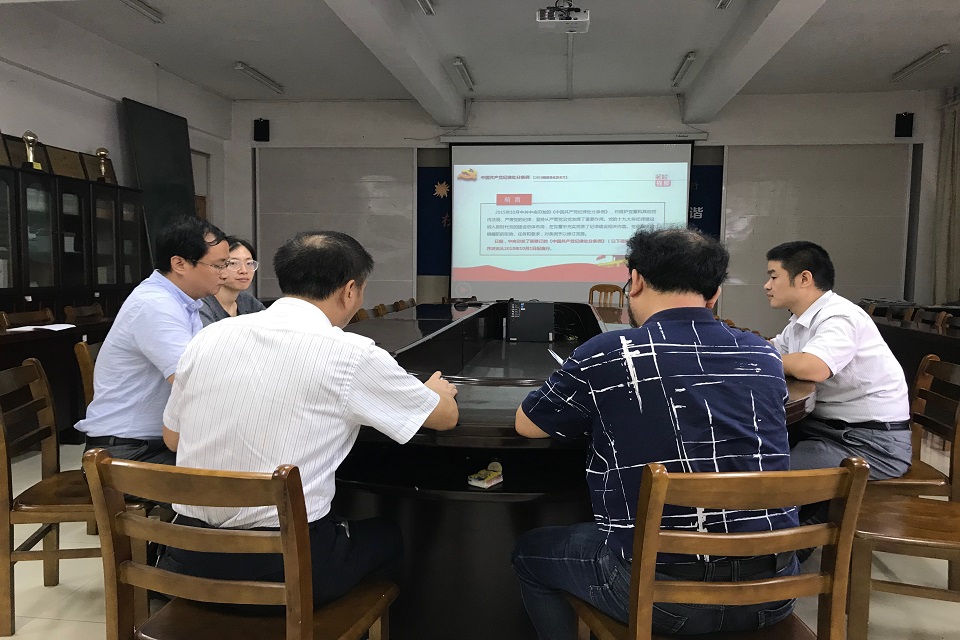 林志强首先向大家传达了《中共青岛农业大学委员会关于认真学习贯彻<中国共产党纪律处分条例>的通知》精神,他强调,此次修订完善《条例》是党中央根据新形势、新任务和新要求,进一步强化全面从严治党的重要举措,体现了党中央用铁的纪律管党治党的决心。他要求中心组成员深刻理解《条例》的精神实质,将学习宣传《条例》推向纵深。随后,中心组成员集体观看了学习《条例》2018新版修改变化的视频,并集体学习了《条例》相关内容。