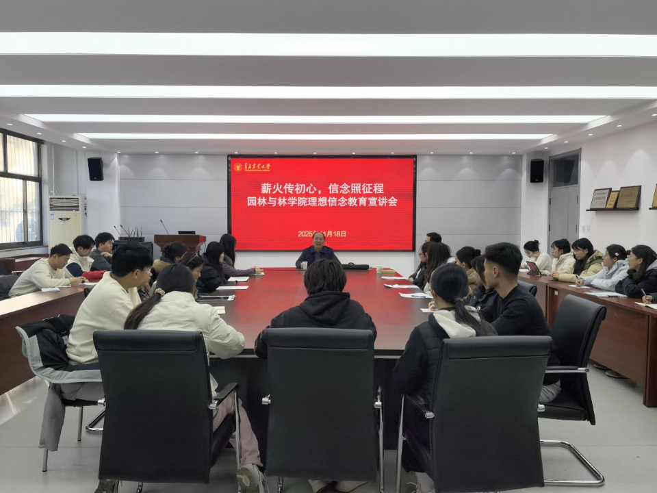 为深化青年学子理想信念教育,引导党员及入党积极分子筑牢信仰之基、补足精神之钙,11月18日下午,园林与林学院在文经楼C219举办“薪火传初心,信念照征程”主题宣讲会。本次活动特邀学院退休老党员、原党总支书记林志强同志担任主讲人,学院党委副书记、副院长李超主持会议,辅导员陈丽及学生党员、入党积极分子参加。