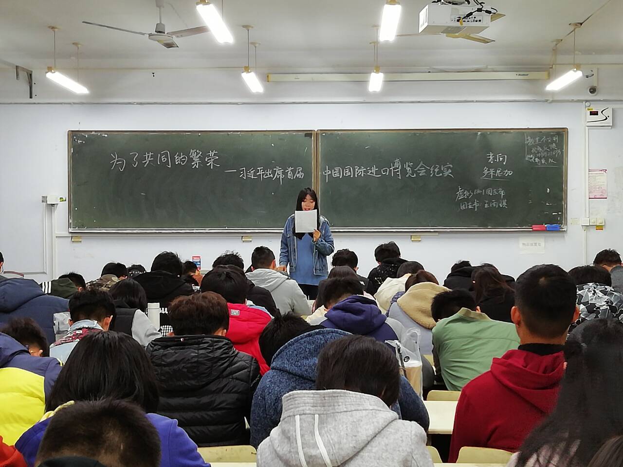 首先,主讲人为同学们介绍了中国进口博览会的基本情况以及所取得的丰厚成果,引出此次政治学习的主题。此次博览会是中国首次举办的国际进口博览会,于上海召开,吸引了172个国家、地区和国际组织参会,证明了中国在当今国际社会的影响力。首届进博会交易采购成果丰硕,开幕式上,习近平发表了主旨演讲。总书记的“大海论”形象地表现了中国和中国经济的坚韧不拔,也描绘了中华民族海纳百川的开阔胸怀。习近平表示:“中国的改革开放不会停步,中国对外开放的大门会越开越大。中国将继续为外国企业来华投资兴业提供良好的环境,让企业家吃下定心丸。”亲自谋划、亲自提出、亲自部署、亲自设计、亲自推动,习近平为中国国际进博会倾注的精力让外界看到了中国主动向世界开放市场,同各国分享中国机遇的满满诚意,同时也使得中国人民对未来更加充满期待。